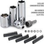 This comprehensive tool set is anchored by ANSI specified oval head design, reversible 72 gear-teeth ratchets covering 1/4, 3/8 and 1/2” drives. This supports the broad assortment of standard and deep well sockets in SAE and metric sizes.