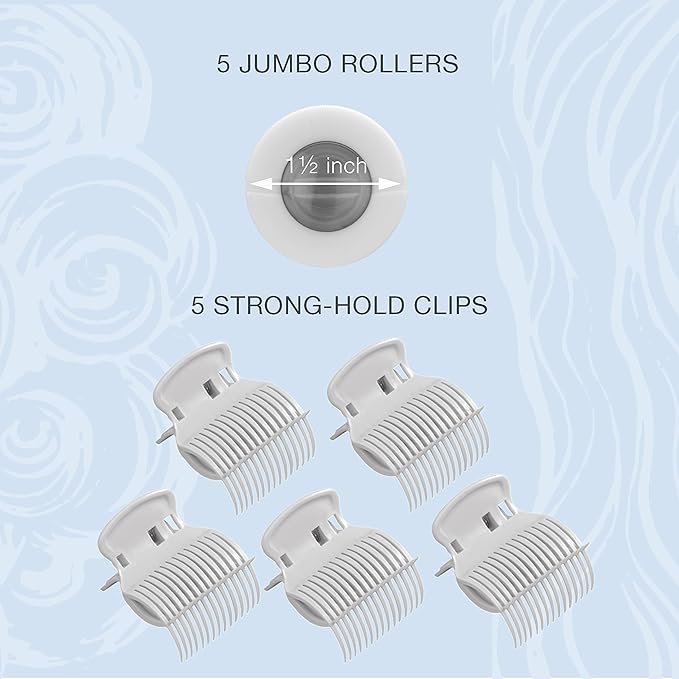This package comes with the Conair Instant Heat Hairsetter, five jumbo 1.5″ rollers, five Super Clipsâ„¢ and a dual-voltage power cord. The jumbo rollers are used for curling, while the Super Clips keep your hair where you want it. The jumbo hot rollers include stay-cool end rings to avoid burning of the fingers when placing the rollers in hair.