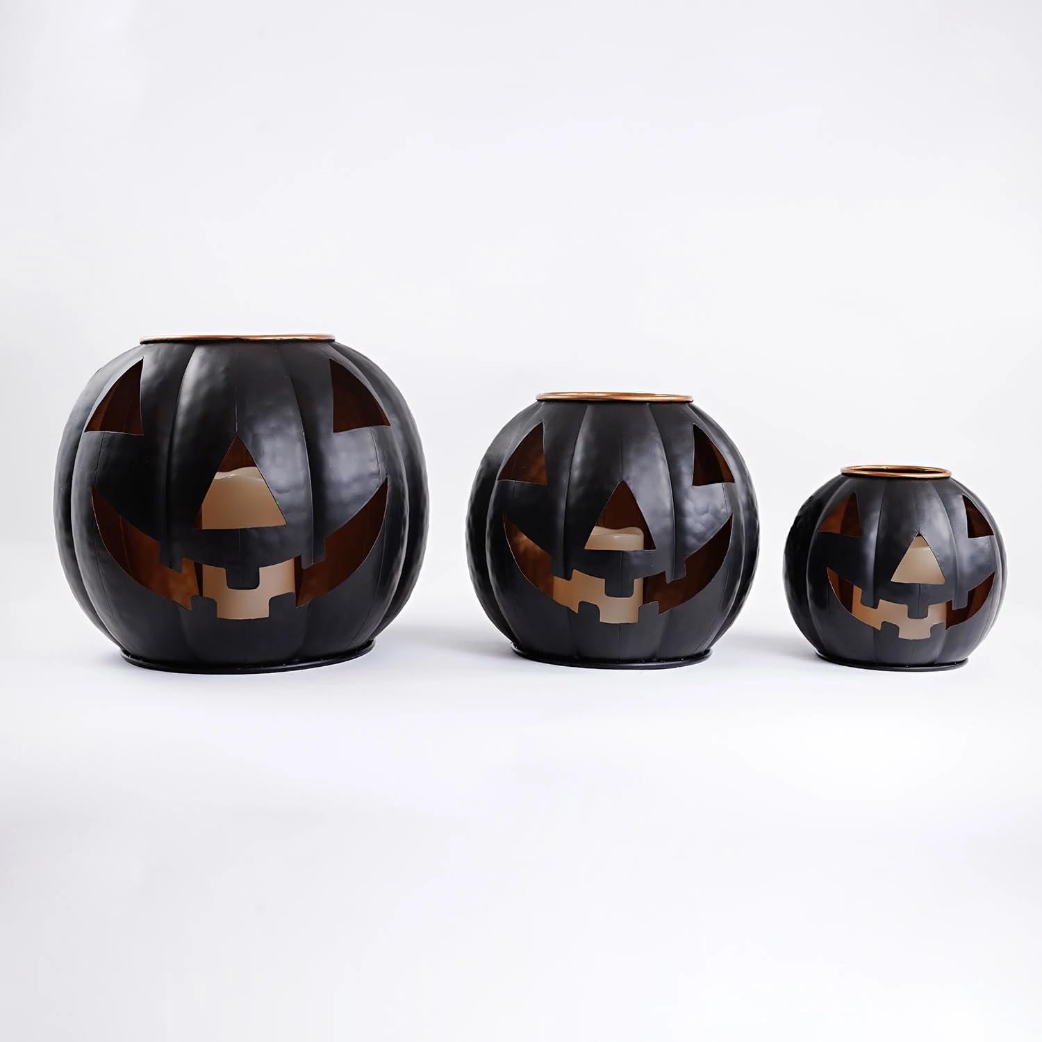 Crafted with convenience in mind, these jack-o-lanterns nest within each other for easy storage when not in use, making them a practical choice for seasonal decor enthusiasts. The set’s battery-operated design ensures versatility in placement, allowing you to adorn both indoor and outdoor spaces with ease. This set comes equipped with 6 AA batteries, providing long-lasting illumination throughout the Halloween season.