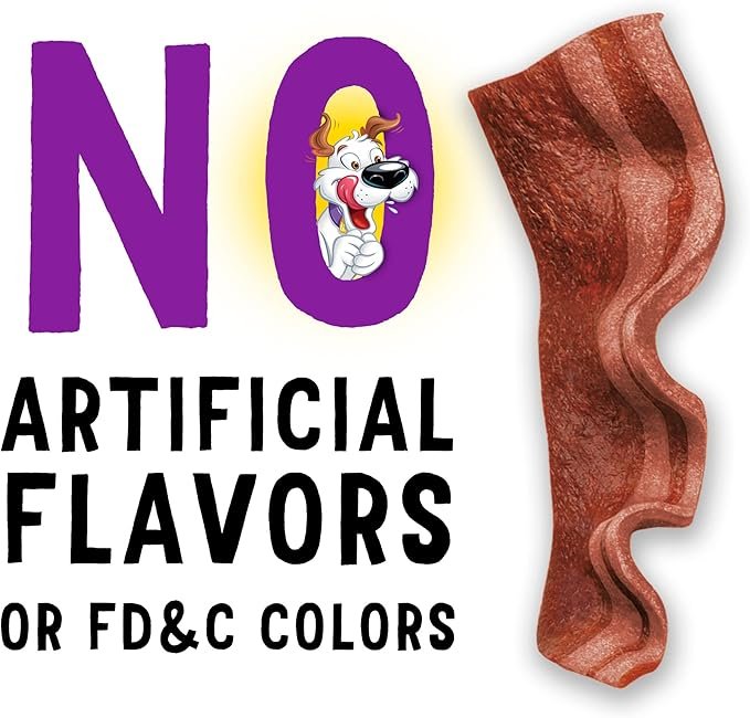 Made without artificial flavors or FD&C colors, these bacon strips dog treats with real bacon in every serving make your dog think he’s eating the same delicious stuff you enjoy at breakfast.