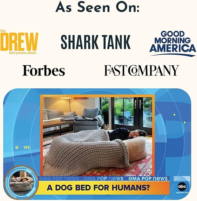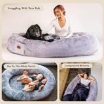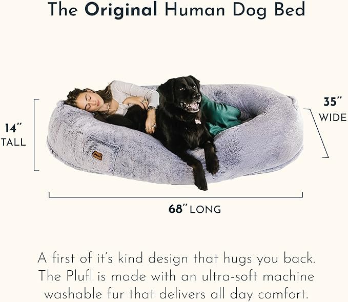 The Snuggle Cuddler is a perfect comfort spot to share with your favorite furry friend! Constructed from the highest quality, durable polyester, the product carriers OEKO-TEX certification with the plush and soft feel that will keep you lounging for hours. A great choice for humans and pets to stay warm together. The side large storage pockets design allows for easy storage of phones, tablets, remotes, and other small items. The dog bed for humans has two sturdily sewn handles, making it convenient to carry and store. The dog bed for humans holds a beautiful ergonomic design, made of high-quality high-density fiber. The raised edges around the perimeter provide stability and security while also supporting the body. Removable & Washable dog bed for humans features a premium two-headed zipper for easy removal. Allow 24-48 hours before use or fluff and shake to ensure full loftiness.
